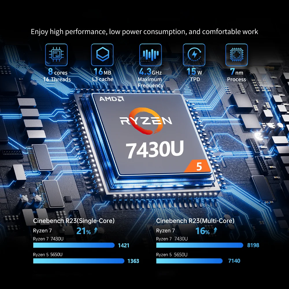 • 🔥 Ryzen™ 5 7430U – flotte Multi-Core-Leistung für Office, Browsing, Medien, leichte Kreativ-Workflows.