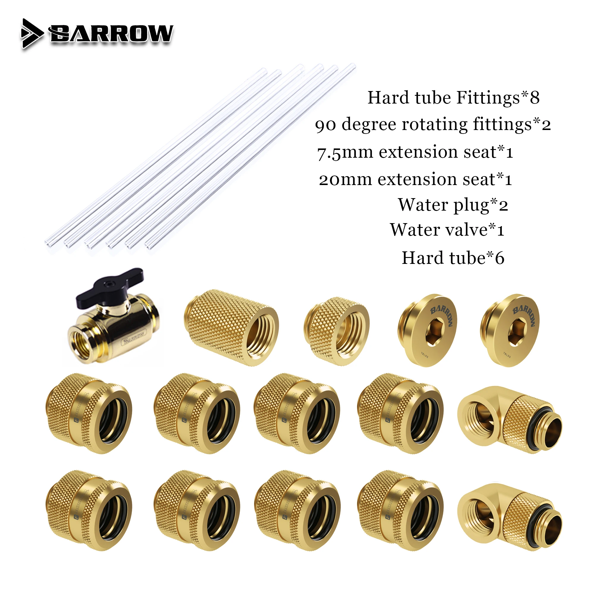 Barrow Hardtube-Wasserkühlungs-Kit – Fittings & PETG (12/14/16 mm) – Silber/Schwarz/Gold/Weiß