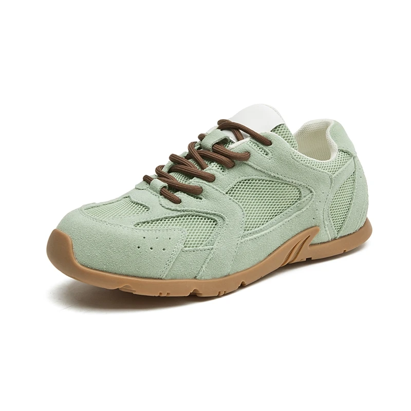 Mein German Training Sneaker für Frühling/Sommer 2025 verbindet retro-inspiriertes Design mit edlem Echtleder-Velours (Rindsleder) und alltagstauglichem Komfort. Die flache Sohle (≤1 cm) läuft sich natürlich, Mesh-Futter hält die Füße frisch und die Gummi-Außensohle gibt zuverlässigen Grip – perfekt für City, Reise und Daily Outfits. Erhältlich in Beige, Grün oder Pink.