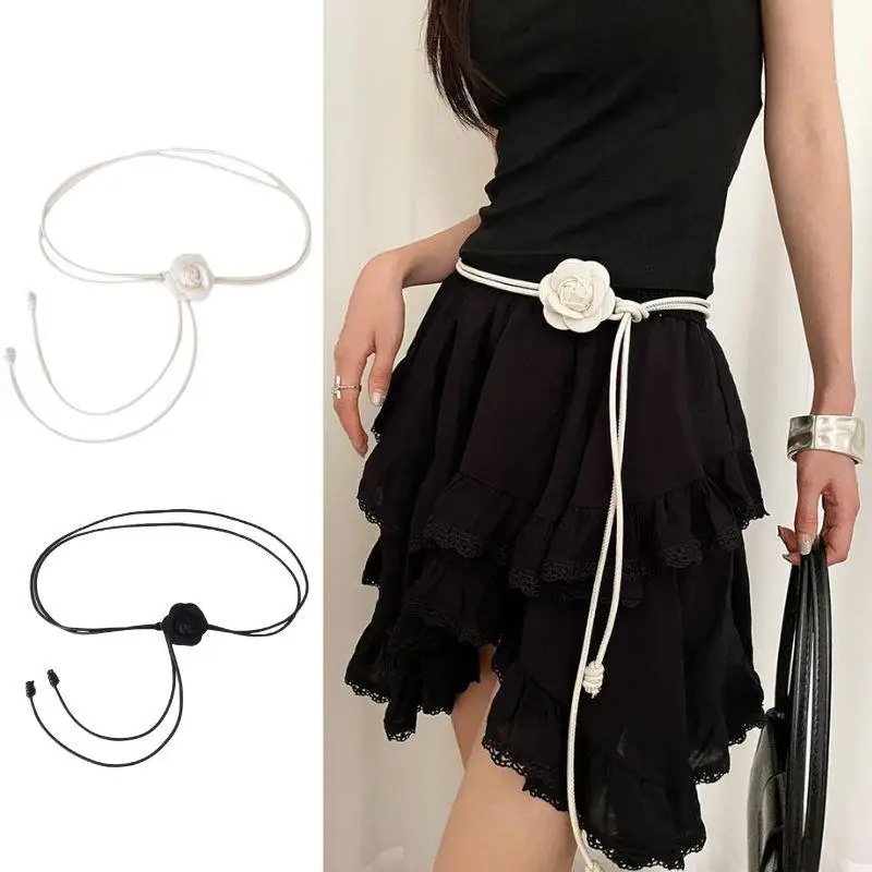 Kamelien-Blumen-Gürtel – Romantischer Taillenschmuck aus Lederband