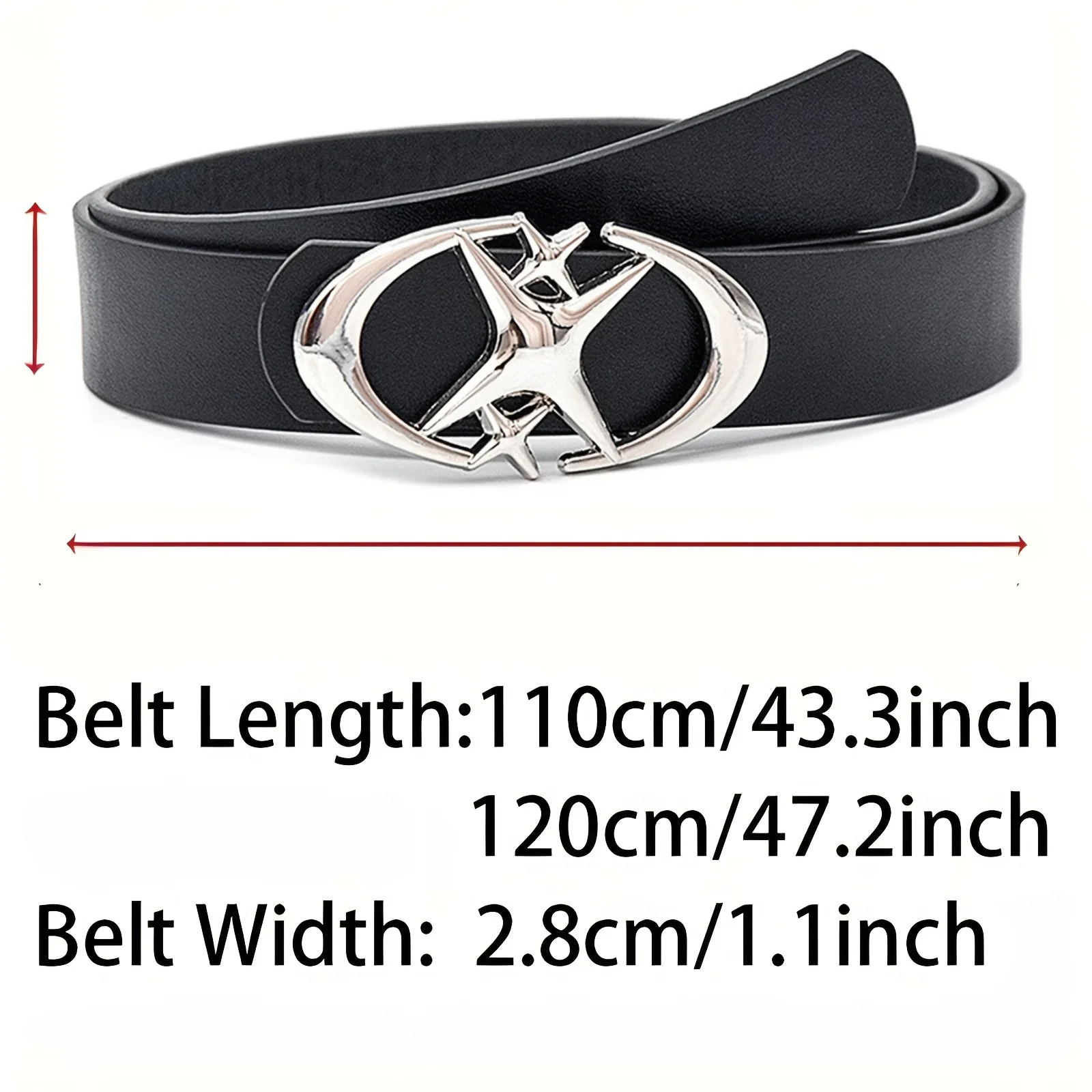 Verleihe deinen Outfits mit diesem edgy Punk-Gürtel einen unverwechselbaren Grunge-Look. Die 2,8 cm schmale PU-Leder-Variante mit markanter Kreuz-Stern-Metallschnalle ist der perfekte Statement-Maker für Jeans, Lederhosen oder Gothic-Röcke.
