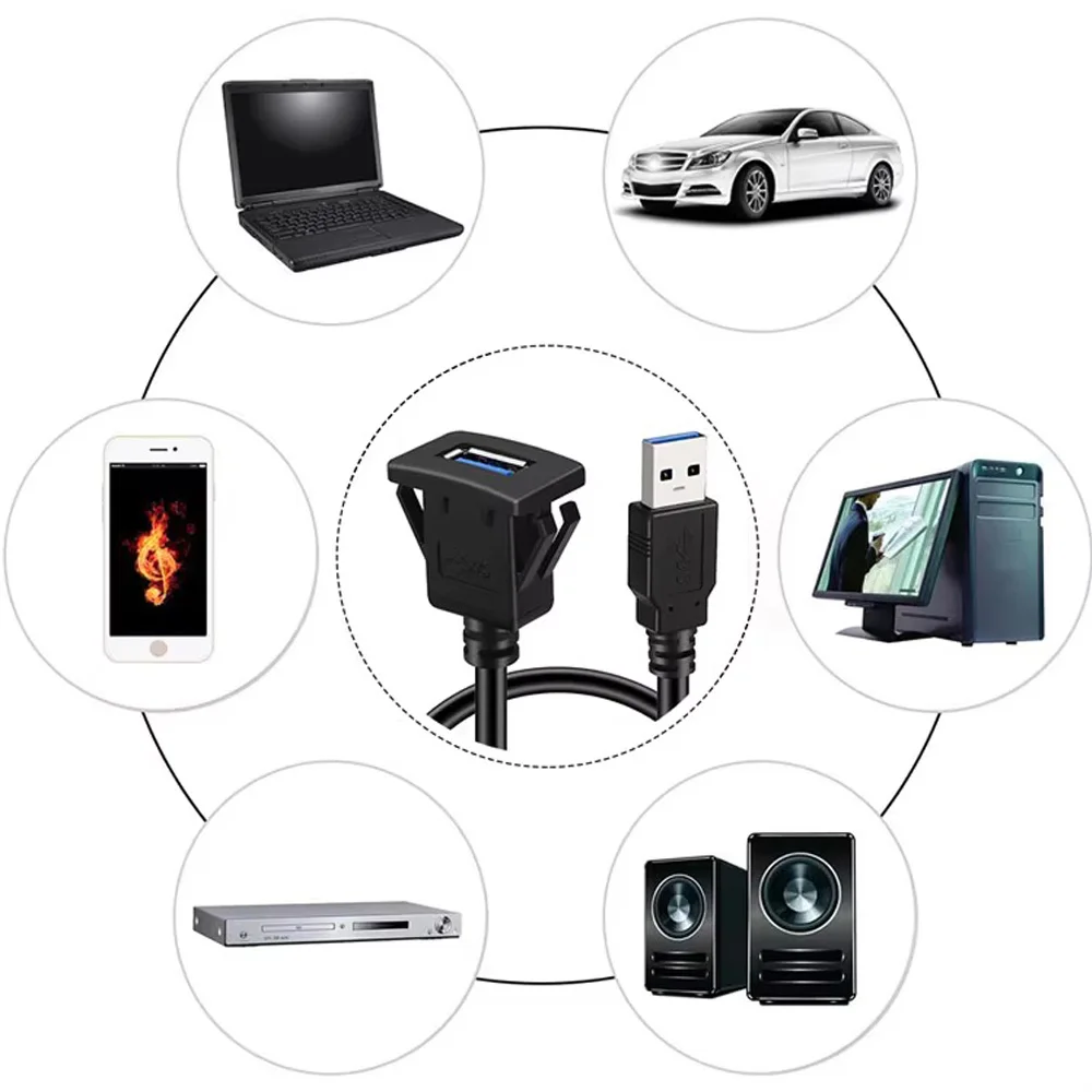 Rüste dein Fahrzeug, Boot oder Motorrad mit einer sauberen Flush/Panel-Mount-Lösung aus: Diese USB-3.0-Male-to-Female + 3,5-mm-AUX Einbau-Verlängerung bringt SuperSpeed-Daten, Stromversorgung und Stereo-Audio direkt an dein Armaturenbrett, die Mittelkonsole oder den Cockpit-Panel. Das 1 m lange, robust geschirmte Kabel mit wasserdichter Leitung sorgt für zuverlässige Verbindung – ideal für Headunits, Autoradios, Marine-Radios, Car-PCs, Motorräder und Offroad-Setups.